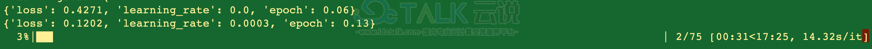 命令执行完,可以看到,微调已经开始了,在测试过程中也会发现,多卡比单个GPU的效率高很多。