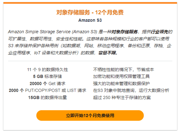 点击获取:亚马逊免费对象存储